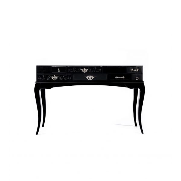 Wood,Glass, High gloss black lacquer and leather