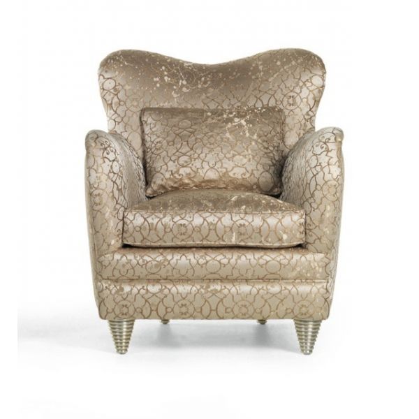 Comfy and luxurious Italian lounge armchair available in the sumptious Champane satin fabric as shown or various alternatives to choose including customers own fabric.