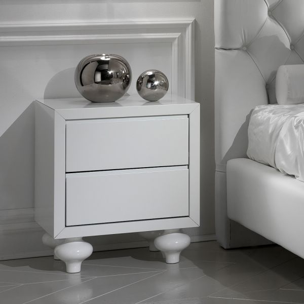 The High End Modern White Lacquered Bedside Cabinet, perfectly simple. Serving to highlight the superb workmanship of this gorgeous modern design. Made of solid wood this set of bedside cabinet has a modern clean outline, with a superb pure white gloss la