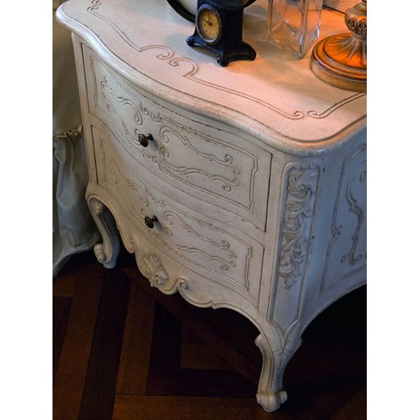Carved from solid wood and re interpreted in our 'Perlage' special finish.
