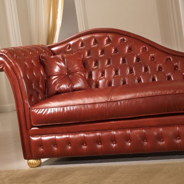 Made in Italy by master craftsmen the solid wood frame is beautifully upholstered using smooth and buttoned leather.