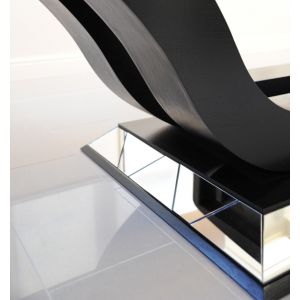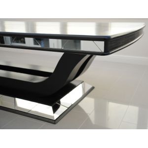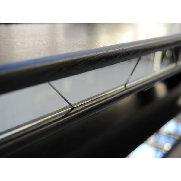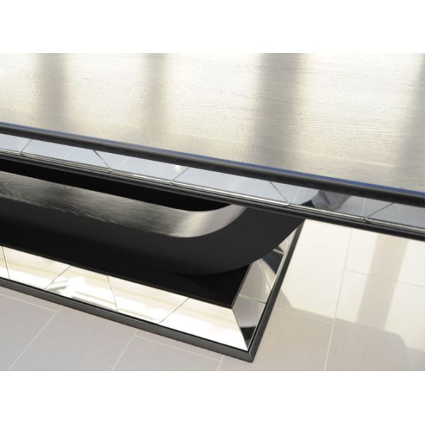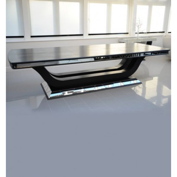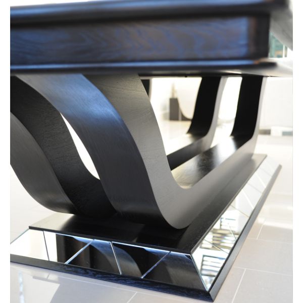 Stunning black European Oak dining table with mirrored section detail to the base and and table edging. Hand made in the UK to a high standard