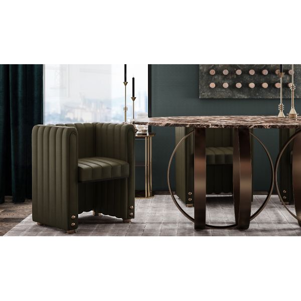 Structure: Beechwood,feet in aged brushed brass Upholstery: Geniune leather Details: Aged brushed brass